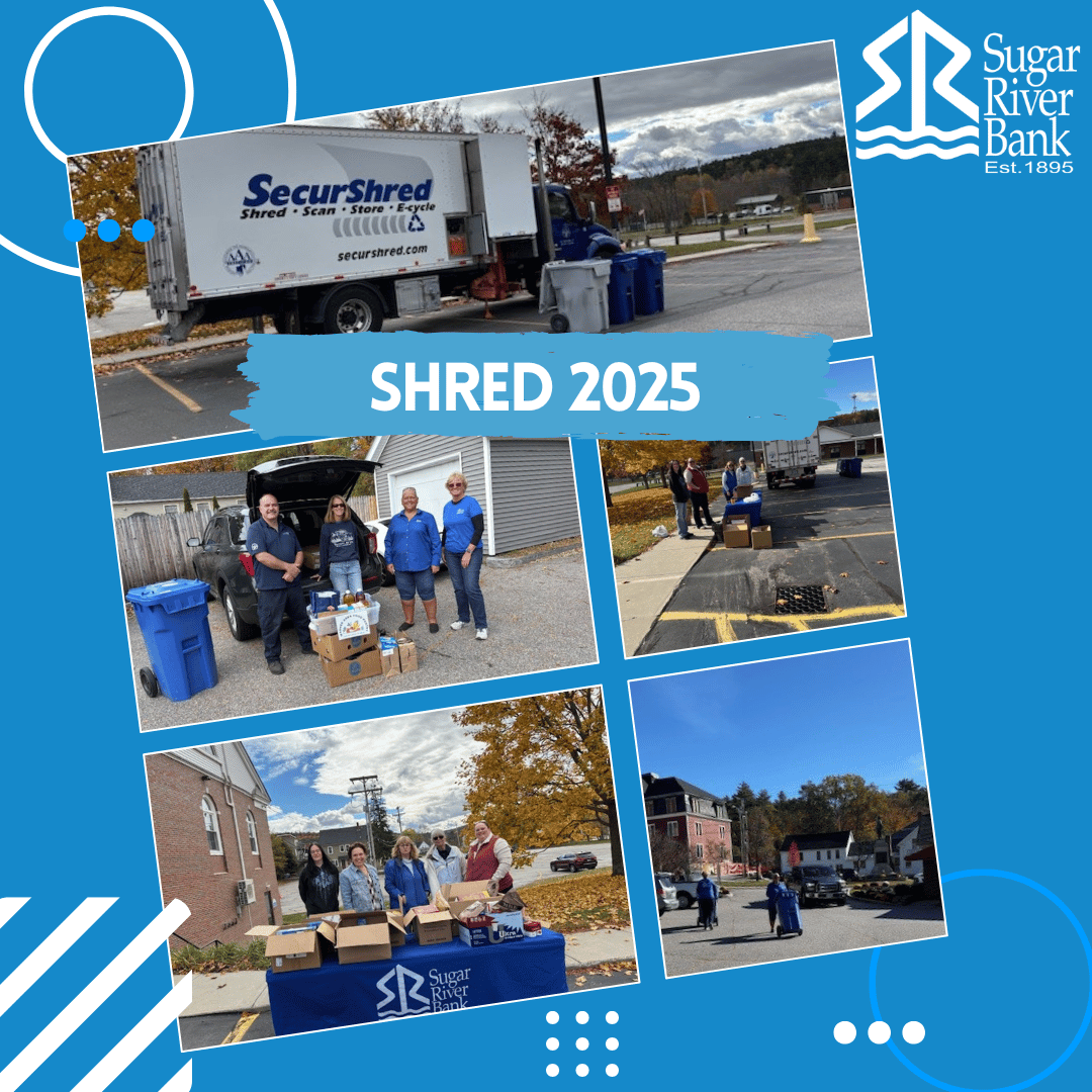 Sugar River Bank proudly took part in New Hampshire Banks Give Back 2025 by hosting two community shred events and food drives. Thanks to the incredible support from our community, over 2,500 pounds of paper were safely shredded, and we collected a generous amount of non-perishable food for the Warner and Newport Food Pantries.